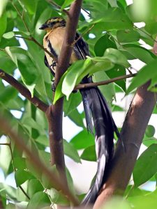 Fun facts: These birds have two blue, racquet shaped feathers that swing back and forth like a pendulum.
