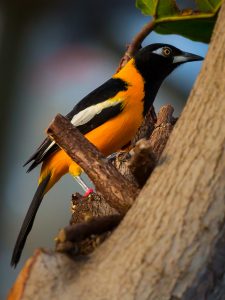 The Venezuelan Troupial is a tropical songbird native to South America. It is the National bird of Venezuela and can also be found in Colombia, and the islands of Puerto Rico, Aruba, Curacao, Trinidad and Bonaire.