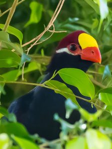 Fun fact: Turaco species are the only birds with truly red or green feathers. Other birds either gain these pigments via their diet or reflect them via iridescence.